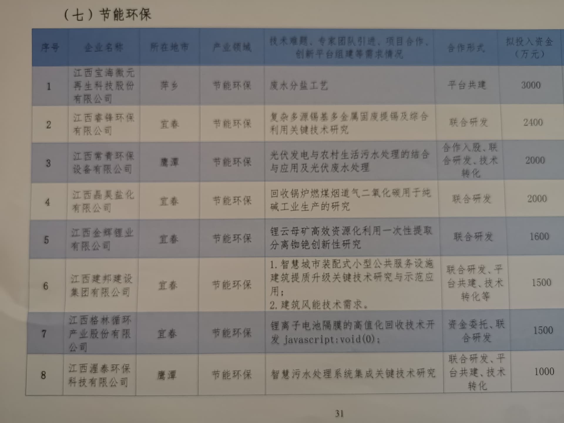 江西省产业技术需求汇编(七)——省内园区内的部分企业技术需求-节能环保领域
