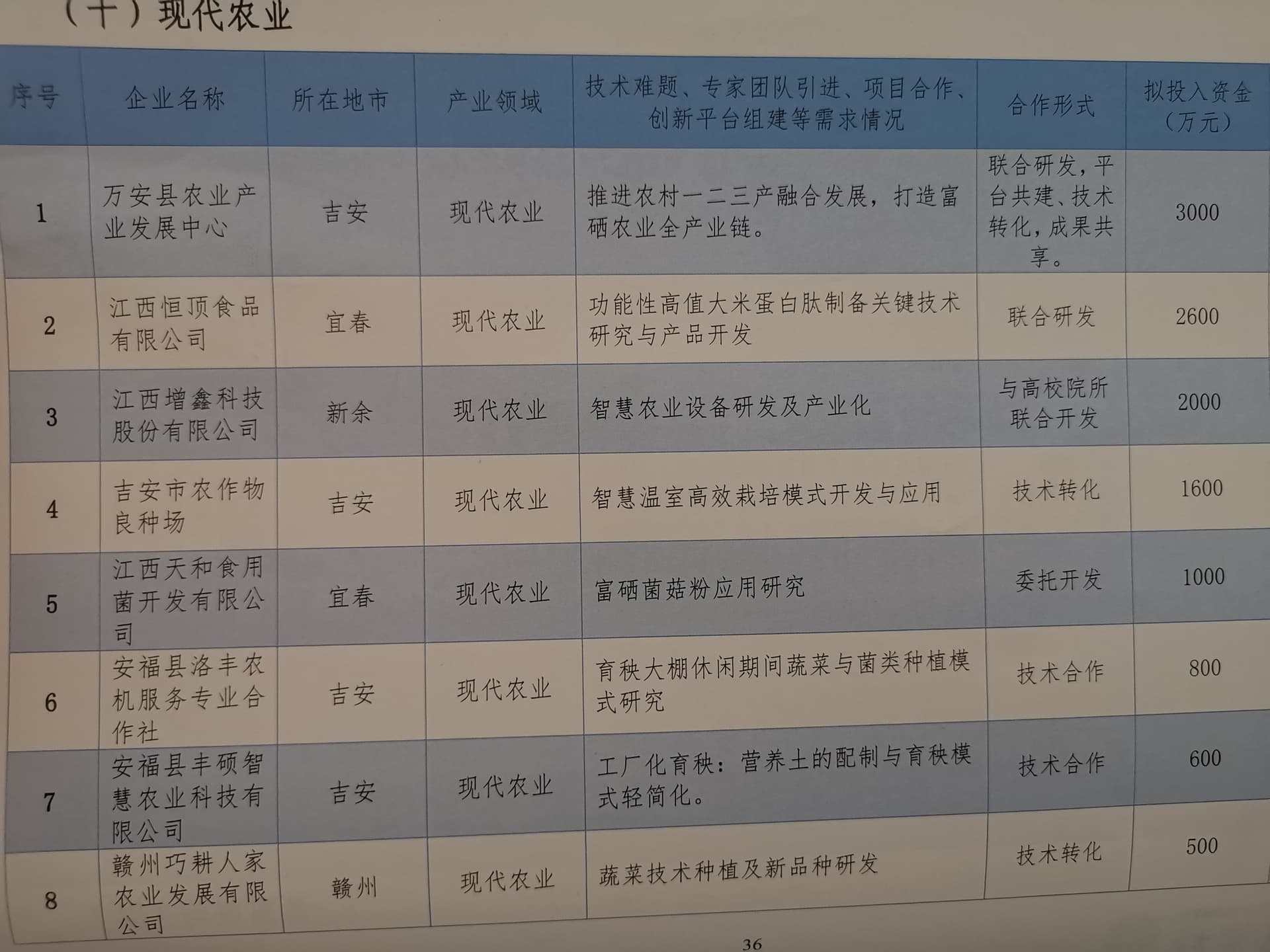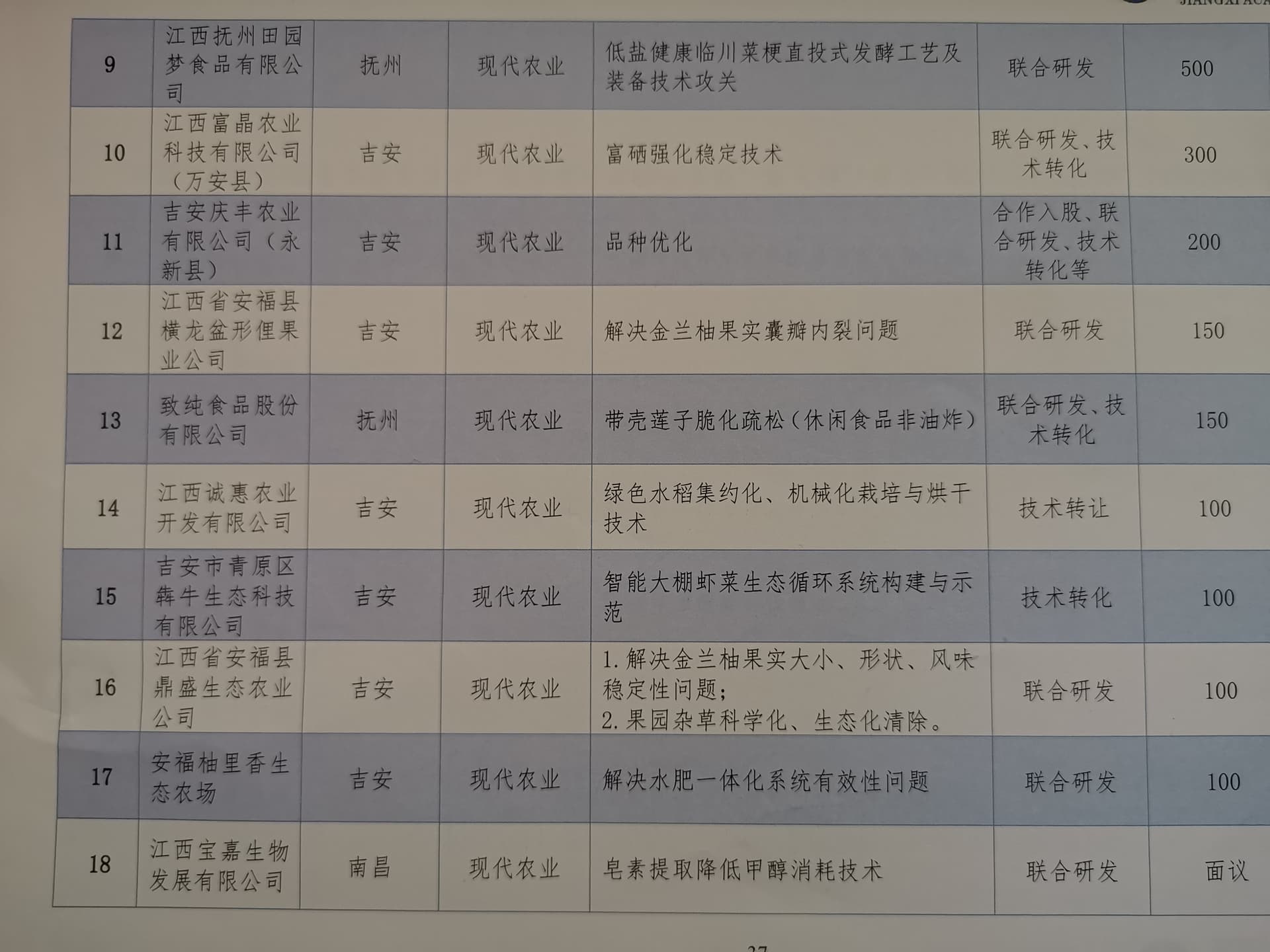 江西省产业技术需求汇编(十)——省内园区内的部分企业技术需求-现代农业领域